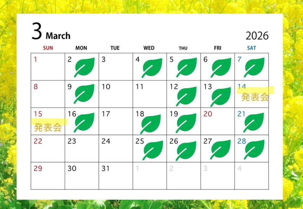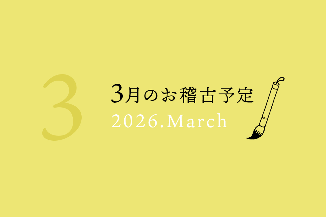 2026.3月のお稽古予定 2026 2/16 月のお稽古予定 2026年2月16日 〜 お知らせ 〜3月は、生徒作品発表会【3/14(土)・15(日)】があります。 EZATO 今年の金賞は、誰に輝くでしょうか🥰会場でお待ちしています。 月のお稽古予定 書道教室 東秀書道教室 よかったらシェアお願いします! URLをコピーする URLをコピーしました! URLをコピーしました! 2026.2月のお稽古予定 関連記事 2026.2月のお稽古予定 2026年1月23日 2026.1月のお稽古予定 2025年12月22日 2025.12月のお稽古予定 2025年11月16日 2025.11月のお稽古予定 2025年10月19日 2025.10月のお稽古予定 2025年9月21日 2025.9月のお稽古予定 2025年8月19日 2025.8月のお稽古予定 2025年7月20日 2025.7月のお稽古予定 2025年6月20日